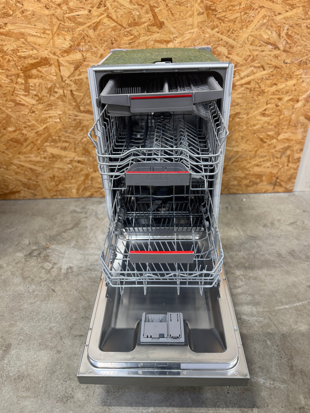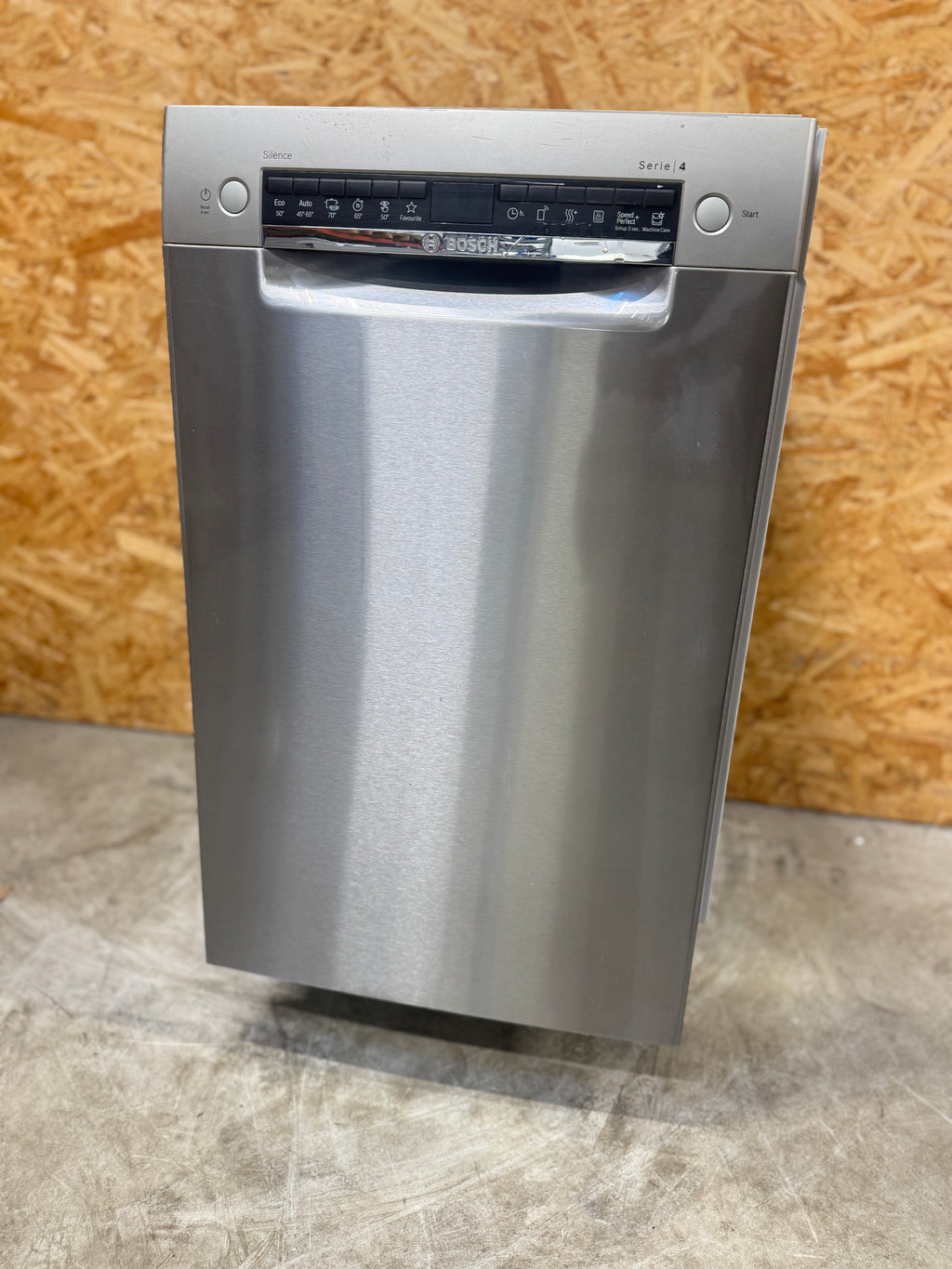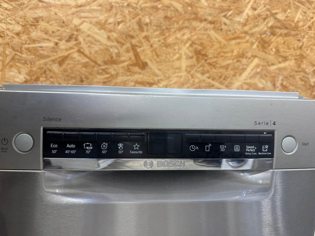 Brugt opvaskemaskine med 24 mdr. garanti – brugt Bosch opvaskemaskine med smal bredde på 45 cm, med plads til 10 standardkuverter, der passer fint til den mindre lejlighed, sommerhuset eller kolonihaven. Pæn maskine der har WiFi som kan styres via Home Connect appen. Har enkelte ubetydelige brugsspor. Du er altid velkommen til at besigtige produkterne på vores lager i Glostrup inden køb.