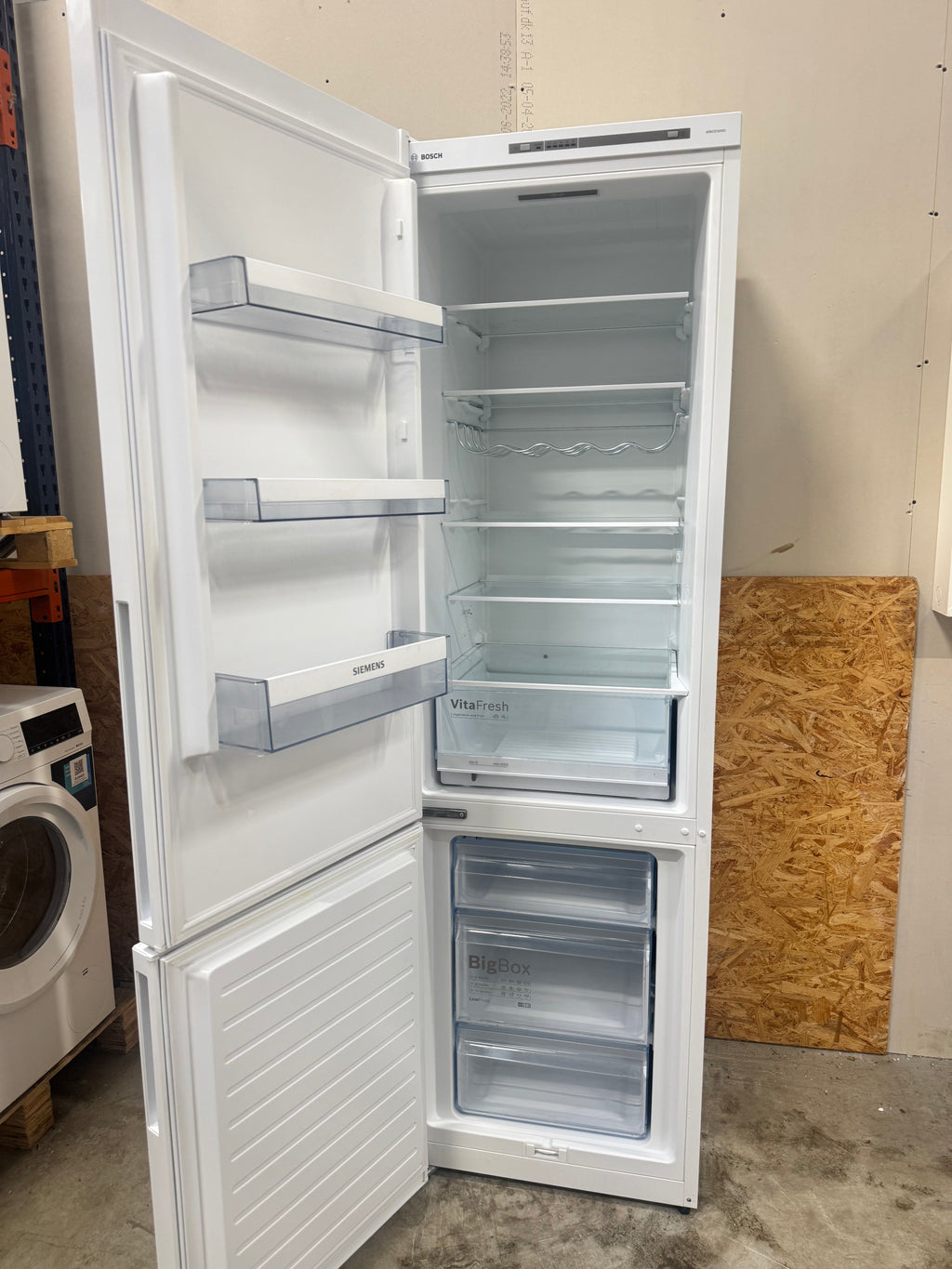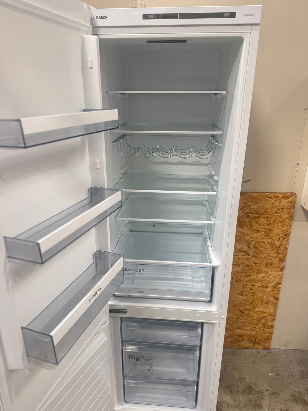 Bosch Køle-/fryseskab med VitaFresh-skuffe i køledelen, som holder frugt og grønt frisk i længere tid.