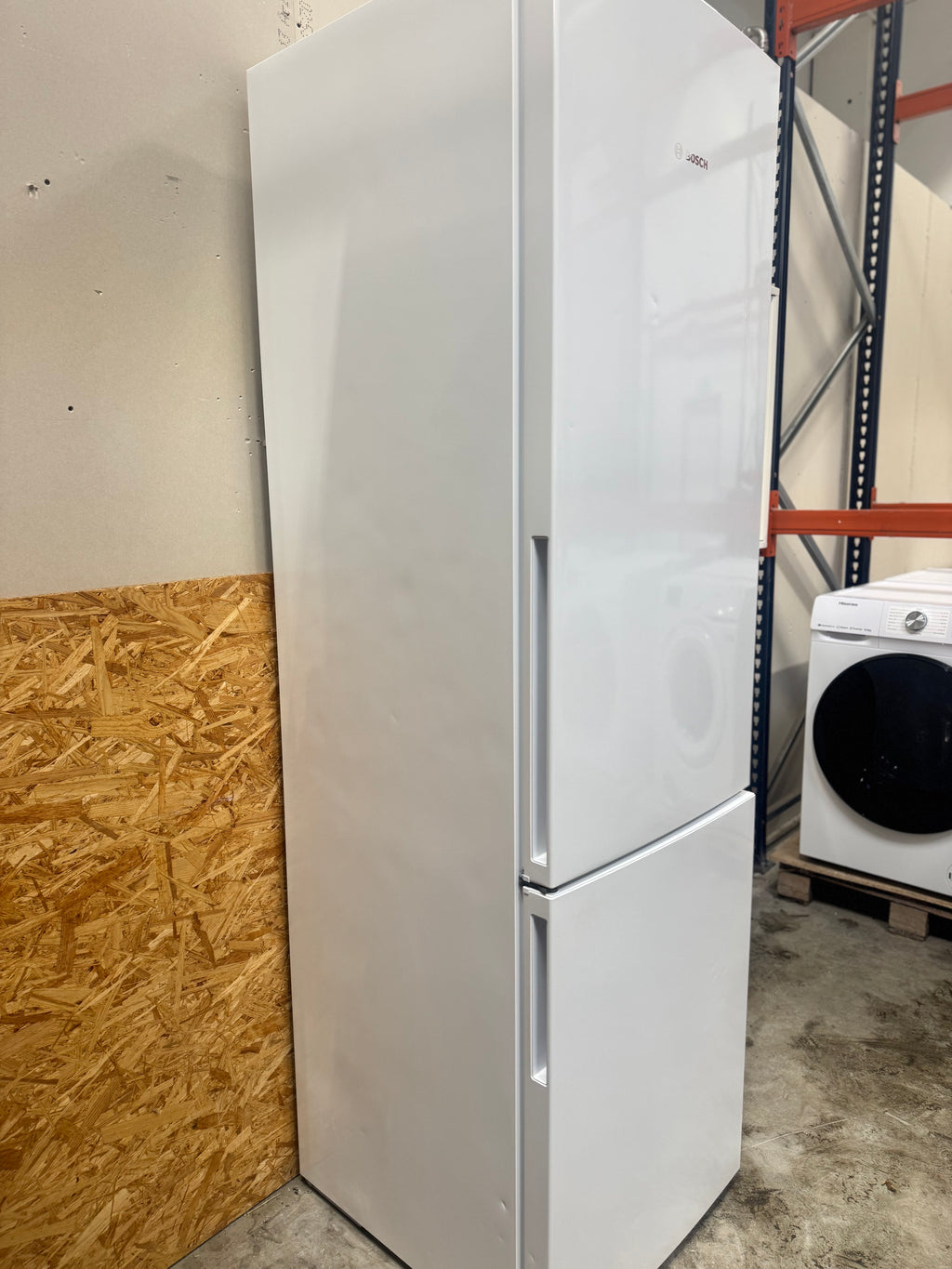 Brugt køle/fryseskab med 24 mdr. garanti: brugt Bosch køle/fryseskab med højde på 201 cm. med 249 ltr. køle- og 94 ltr. frysekapacitet. Pænt og lydsvagt nyere køleskab, med enkelte brugsspor. Bemærk venligst: Har enkelte utydelige små buler på frontlågerne, samt højre og venstre side af skabet.  Du er altid velkommen til at besigtige produkterne på vores lager i Glostrup inden køb.