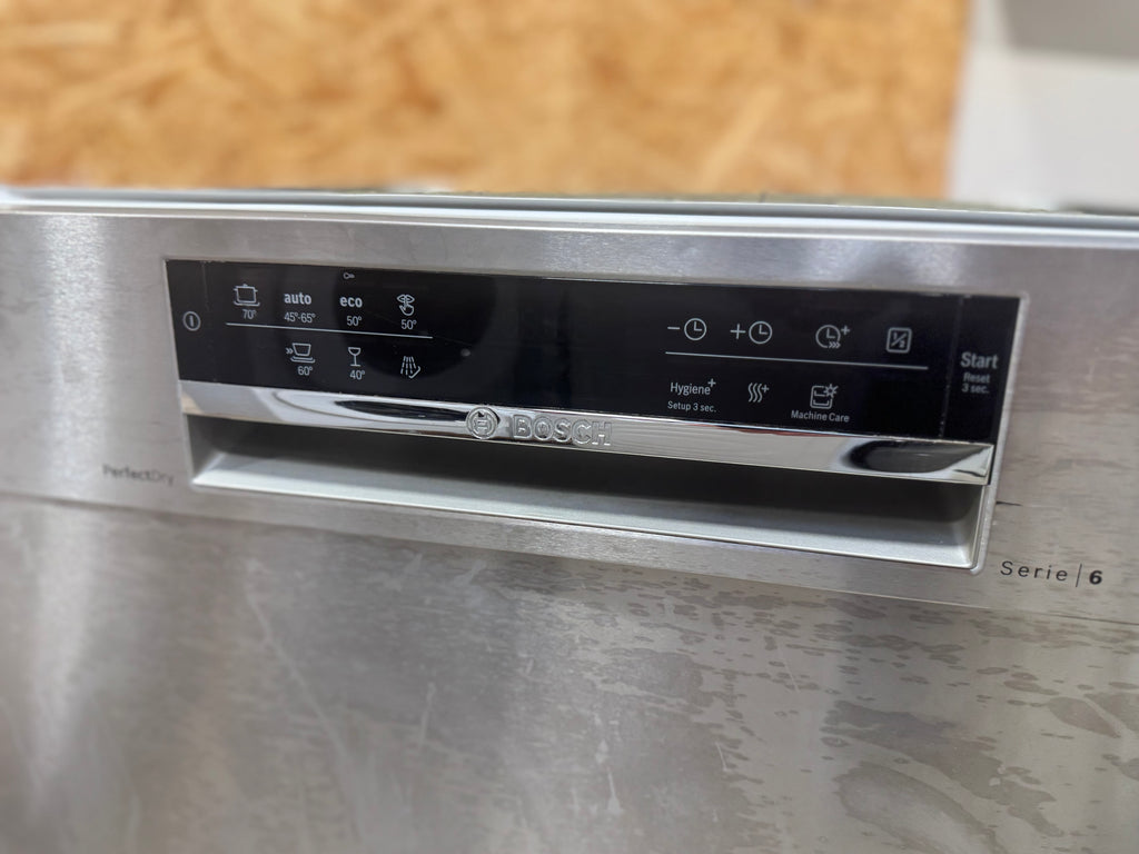 Brugt med 24 mdr. garanti – brugt Bosch Serie 6 opvaskemaskine med plads til 14 kuverter. Flot opvaskemaskine i rustfri stål med enkelte kosmetiske brugsspor. Bemærk venligst: Mærker på front lågen - ses på billede. Du er altid velkommen til at besigtige produktet på vores lager i Glostrup inden køb