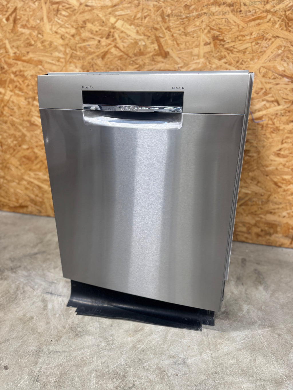 Brugt opvaskemaskine med 24 mdr. garanti - Brugt Bosch Serie 6 opvaskemaskine i rustfrit stål med plads til 13 kuverter og HomeConnect Wi-Fi. Flot og velholdt nyere opvaskemaskine, uden ret mange brugsspor. Du er altid velkommen til at besigtige produktet på vores lager i Glostrup inden køb.