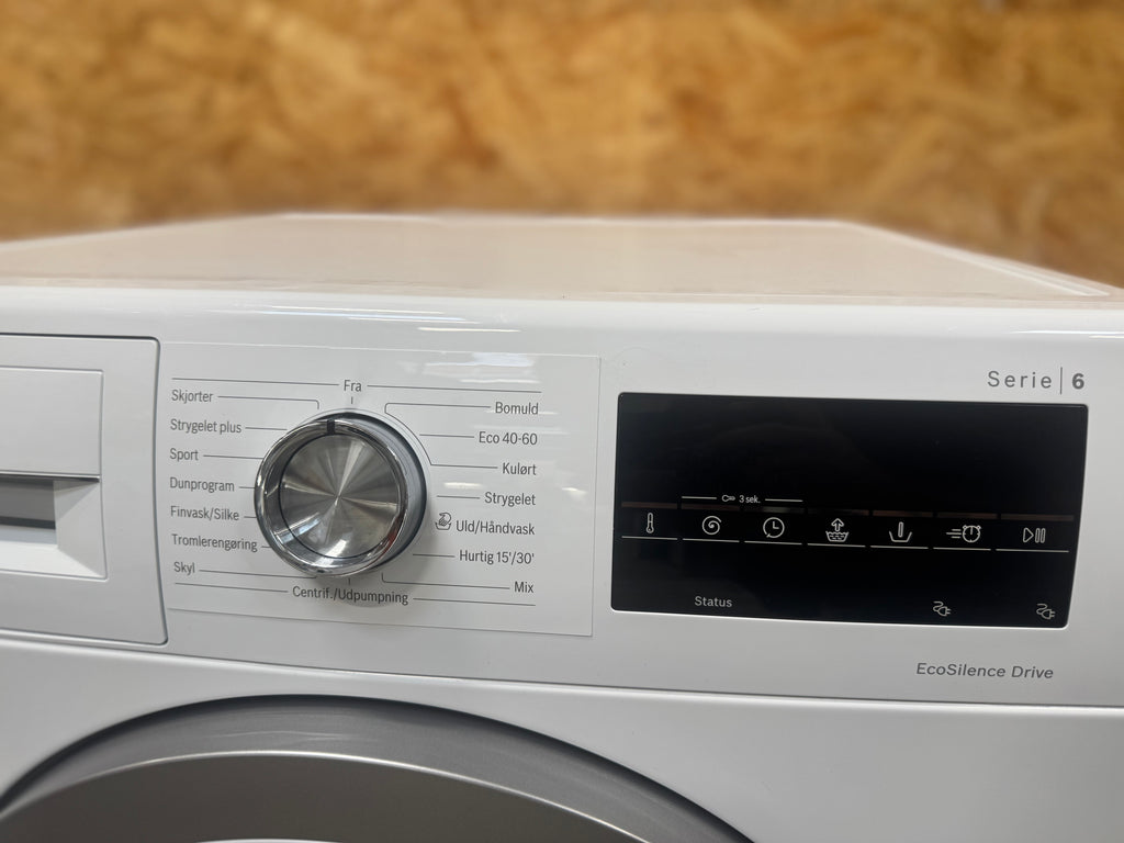 Brugt vaskemaskine med 24 mdr. garanti – brugt Serie 6 Bosch vaskemaskine med 9 kg. vaskekapacitet og 1400 o/min. Flot nyere vaskemaskine med få brugsspor. Bemærk: En lille ridse på højre side. Du er altid velkommen til at besigtige produktet på vores lager i Glostrup inden køb.