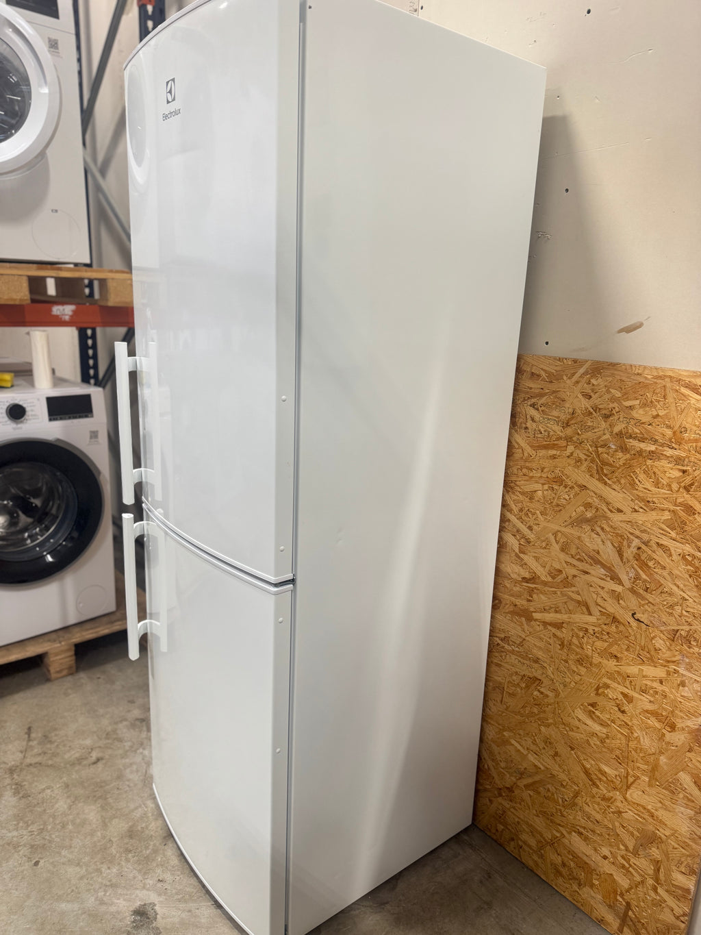 Brugt køle/fryseskab med 24 mdr. garanti – brugt Electrolux køle/fryseskab med 195 ltr. køle- og 110 ltr. frysekapacitet. Flot køle/fryseskab med få brugsspor. Bemærk venligst: Har en bule på øverste låge og enkelte små på højre side af skabet. Du er altid velkommen til at besigtige produkterne på vores lager i Glostrup inden køb