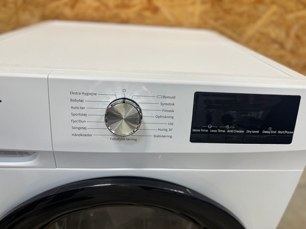 Brugt tørretmbler med 24 mdr. garanti – brugt Frigor kondens tørretumbler med hele 9 kg. kapacitet og varmepumpe teknologi. Rigtig fin, næsten ny tørretumbler, med minimale brugsspor - som ny!!. Du er altid velkommen til at besigtige produktet på vores lager i Glostrup inden køb.