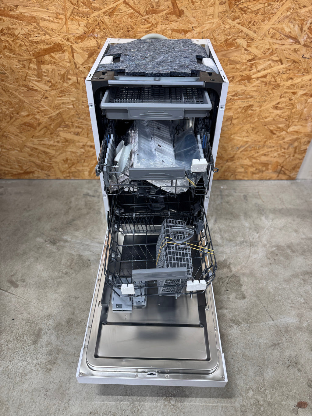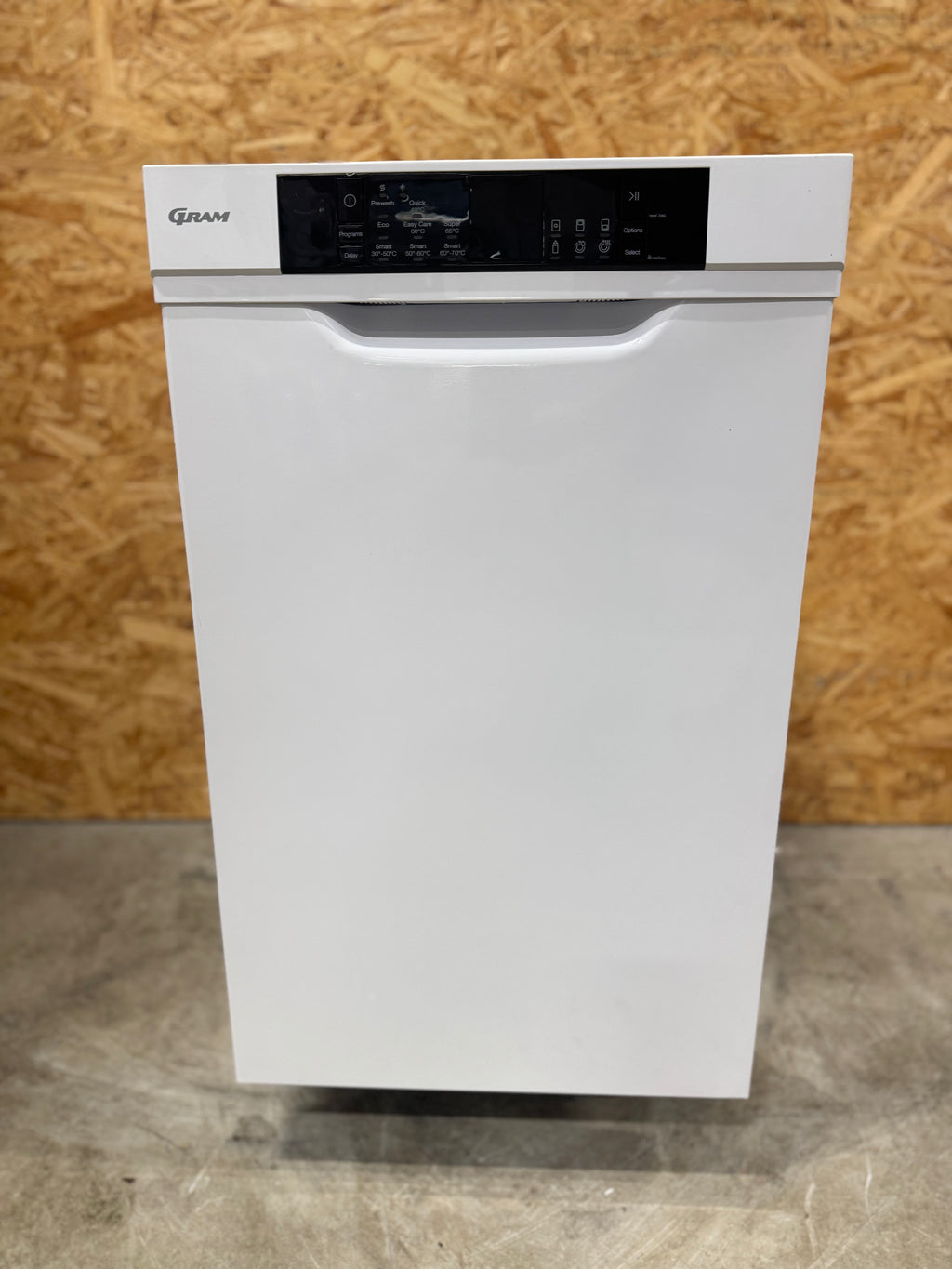 Ubrugt opvaskemaskine med 24 mdr. garanti:  ubrugt Gram opvaskemaskine med bredde på 45 cm. Helt ny lækker maskine. Bemærk: Har fået en lille bule på højre og venstre side - ses ikke så snart maskinen er installeret. Du er altid velkommen til at besigtige produkterne på vores lager i Glostrup inden køb.