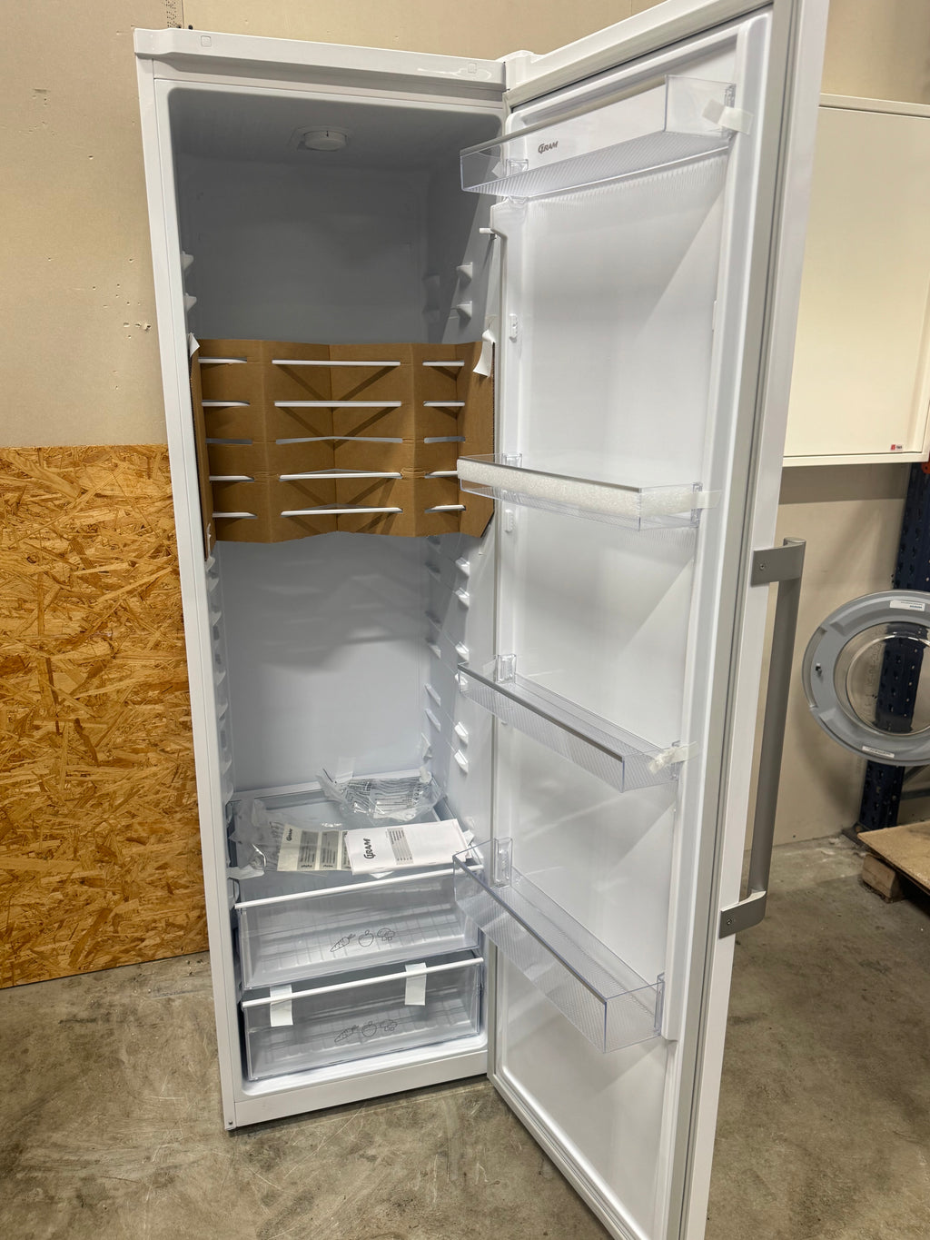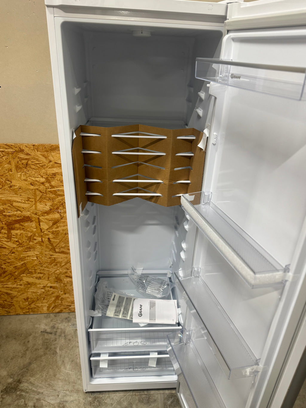 Ubrugt køleskab med 24 mdr. garanti – ubrugt Gram køleskab med 309 ltr. kapacitet og plads til alle dine madvarer. Helt nyt lækker køleskab der aldrig har været i brug. Bemærk: Har fået en lille bule på hørje side af døren. Du er altid velkommen til at besigtige produktet på vores lager i Glostrup inden køb.