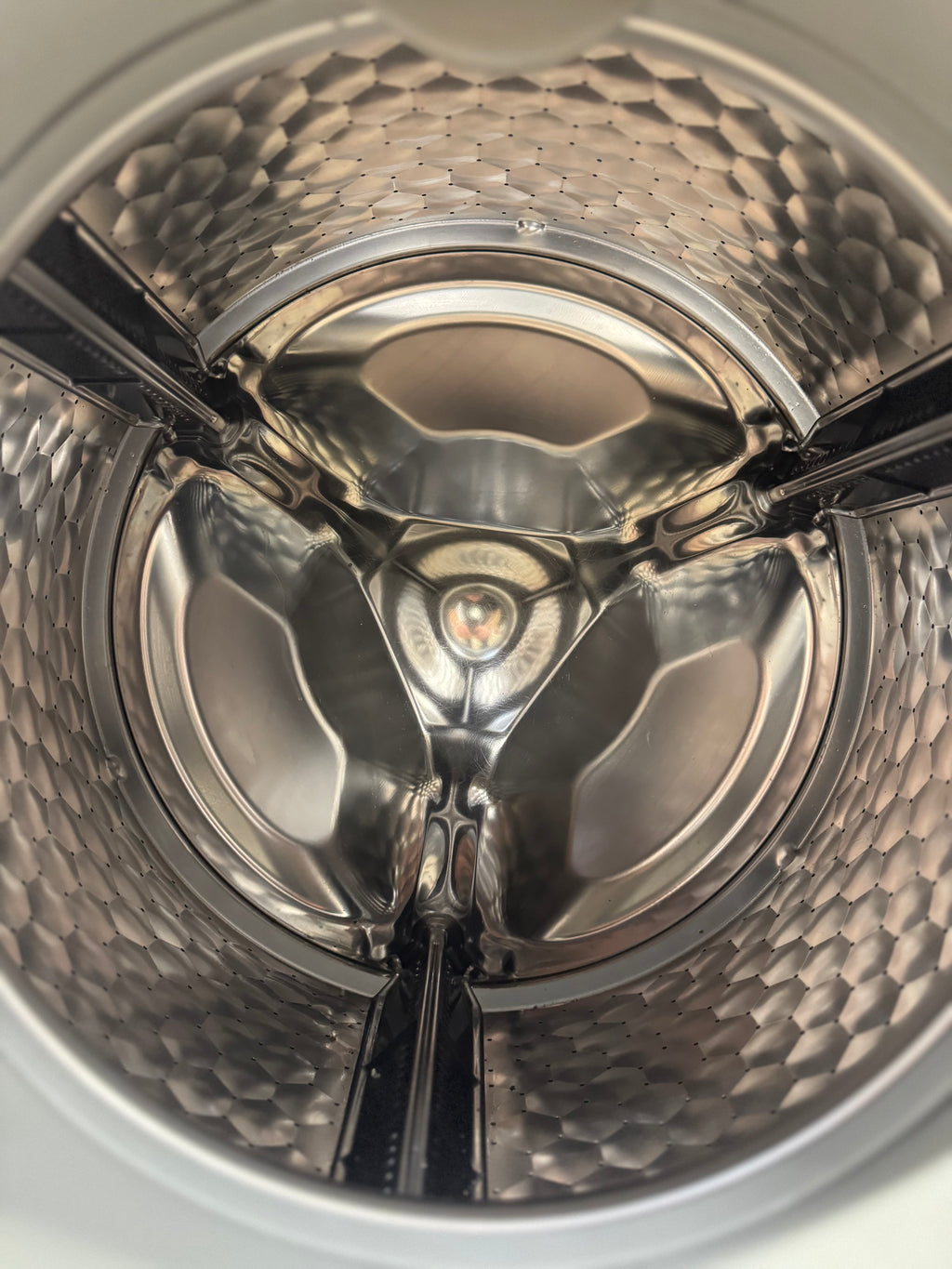 SoftCare-tromle for optimal tekstilbeskyttelse: Den unikke bikagestruktur sikrer, at vasketøjet glider glat hen over en vandfilm, hvilket forhindrer slid og krølning.