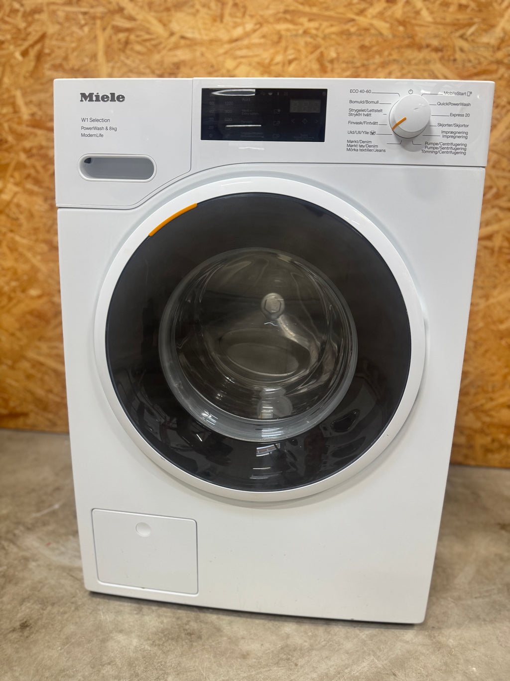 Brugt vaskemaskine med 24 mdr. garanti: brugt Miele vaskemaskine med 8 kg. kapacitet og 1600 o/min centrifugering, samt Wi-Fi funktion til trådløs styring af maskinen. Kvalitets maskine fra Miele med enkelte brugsspor. Bemærk venligst: Enkelte ridser på højre og venstre side af maskinen. Du er altid velkommen til at besigtige produkterne på vores lager i Glostrup inden køb
