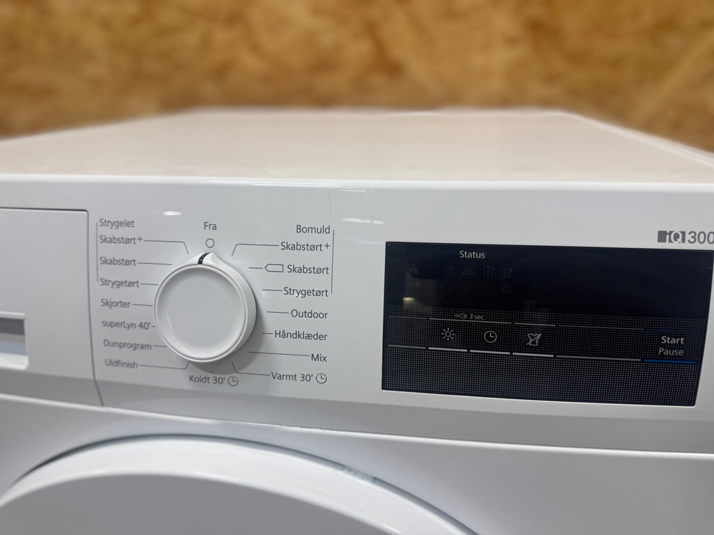 Brugt tørretumbler med 24 mdr. garanti – brugt Siemens iQ300 tørretumbler med varmepumpe teknologi og 7 kg. kapacitet. Meget flot maskine med enkelte brugsspor. Du er altid velkommen til at besigtige produkterne på vores lager i Glostrup inden køb