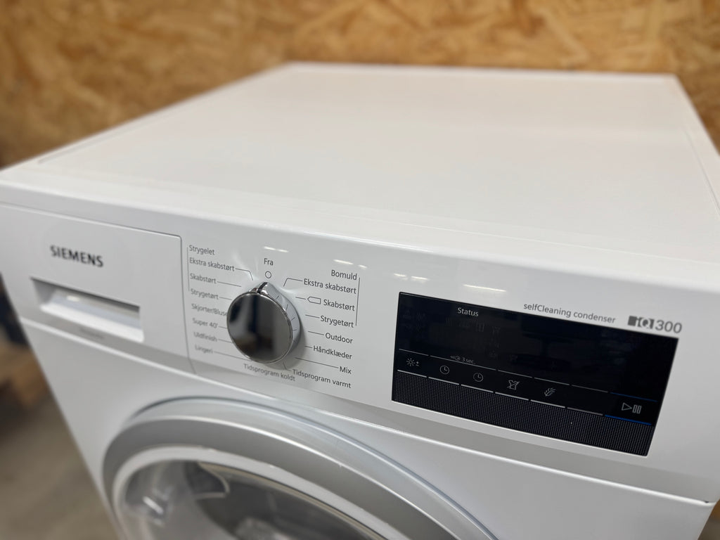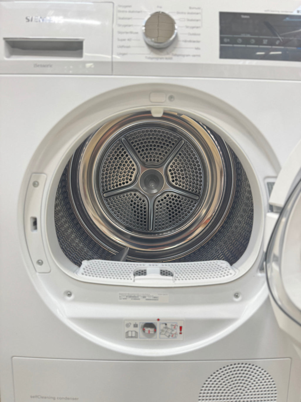 Brugt tørretumbler med 24 mdr. garanti – brugt Siemens iQ300 tørretumbler med varmepumpe teknologi og 8 kg. kapacitet. Pæn nyrenoveret tørretumbler med meget få kosmetiske brugsspor. Du er altid velkommen til at besigtige produktet på vores lager i Glostrup inden køb