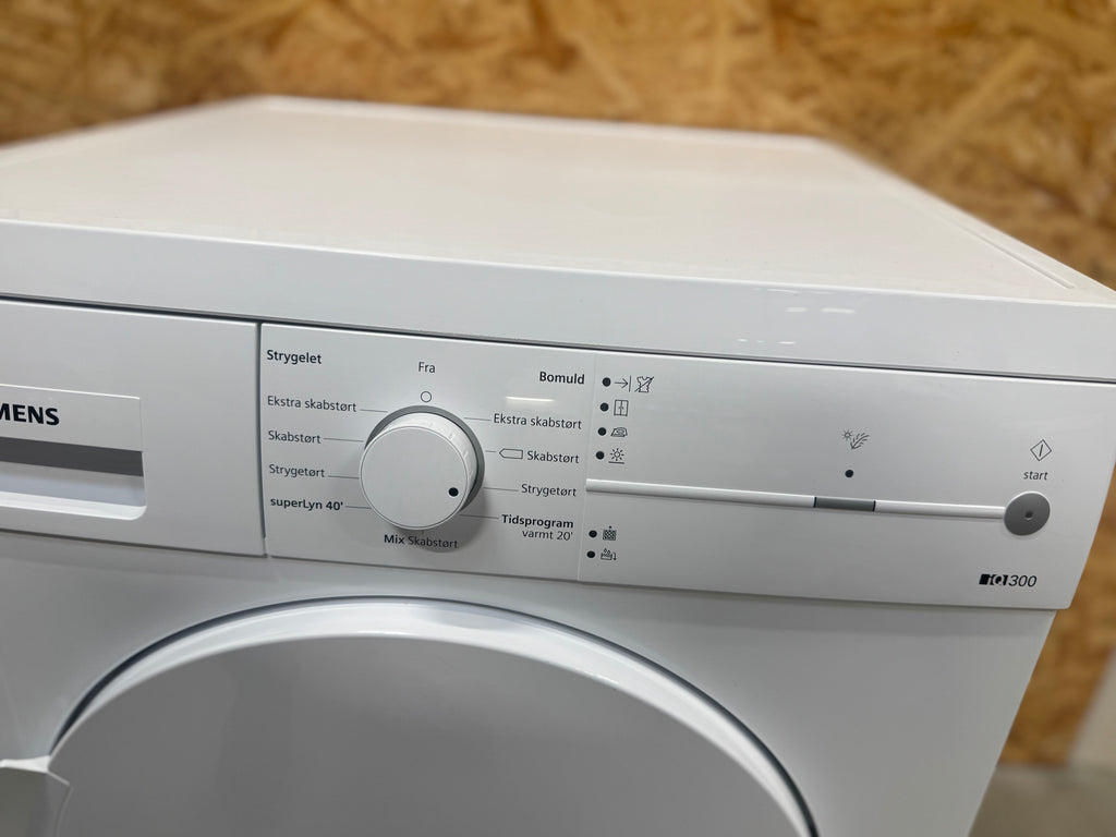 Brugt tørretumbler med 24 mdr. garanti: brugt Siemens iQ300 kondens tørretumbler med 7 kg. kapacitet. Flot og velholdt tørretumbler med minimale brugsspor. Du er altid velkommen til at besigtige produktet på vores lager i Glostrup inden køb