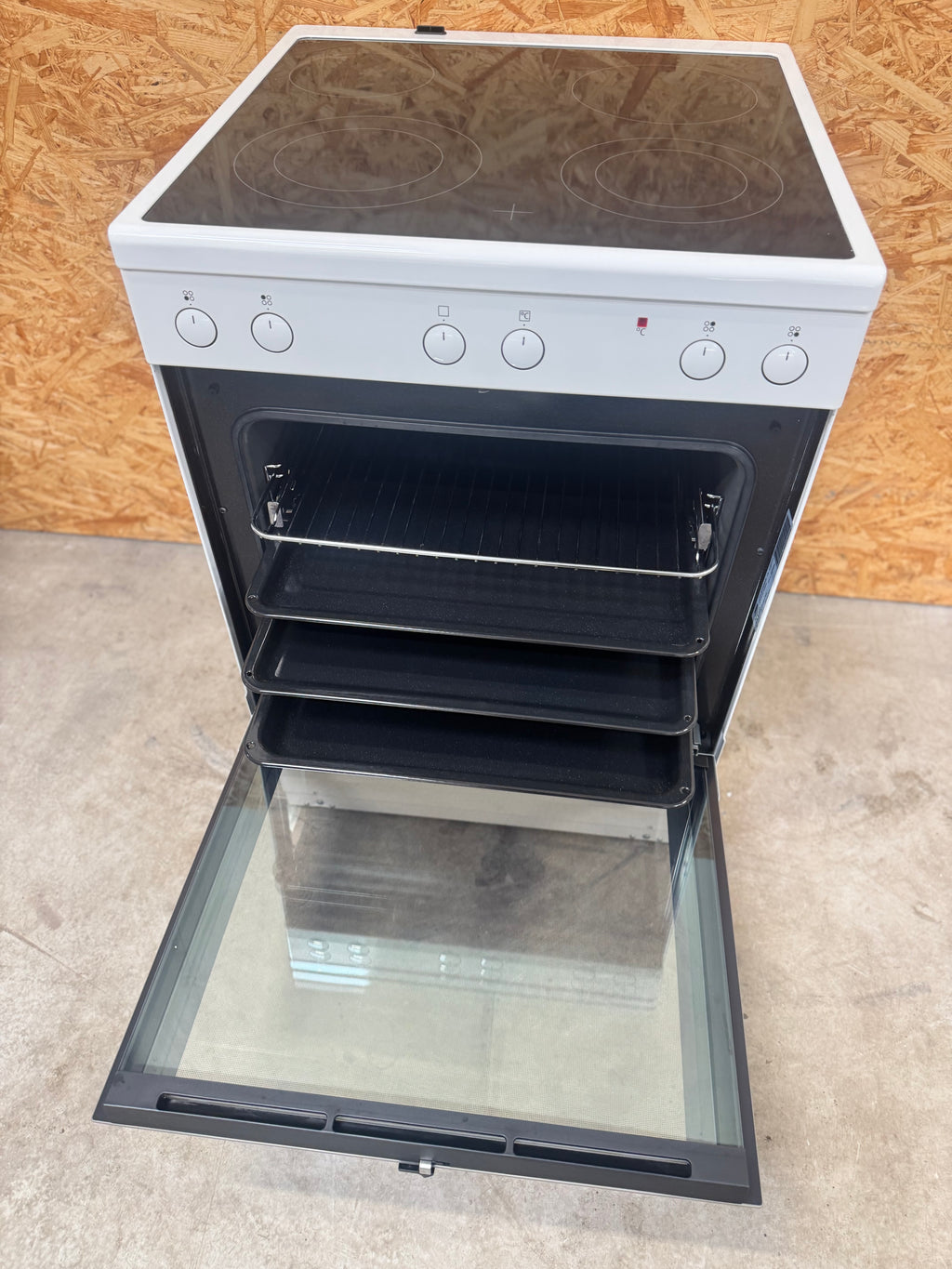 Brugt komfur med 24 mdr. garanti: brugt Voss keramisk komfur med 72 ltr. ovnrum. og 2 sæt udtræksskinner. Flot komfur i rigtig pæn stand, med få brugsspor. Bemærk: Enkelte ridser på kogepladerne, samt på højre side af komfuret. Du er altid velkommen til at besigtige produktet på vores lager i Glostrup inden køb