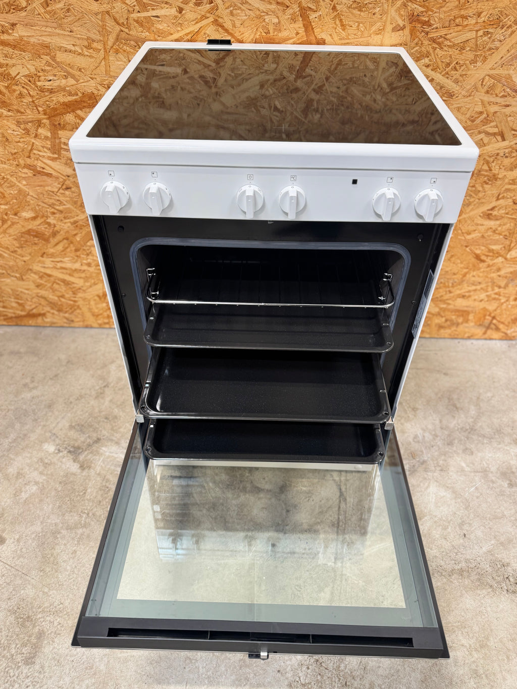 Brugt komfur med 24 mdr. garanti: Brugt Voss glaskeramisk komfur med stor ovn på 73 ltr. Flot nyere kvalitets komfur fra Voss med enkelte brugsspor. Bemærk venligst: Små ridser på kogeplader. Du er altid velkommen til at besigtige produktet på vores lager i Glostrup inden køb